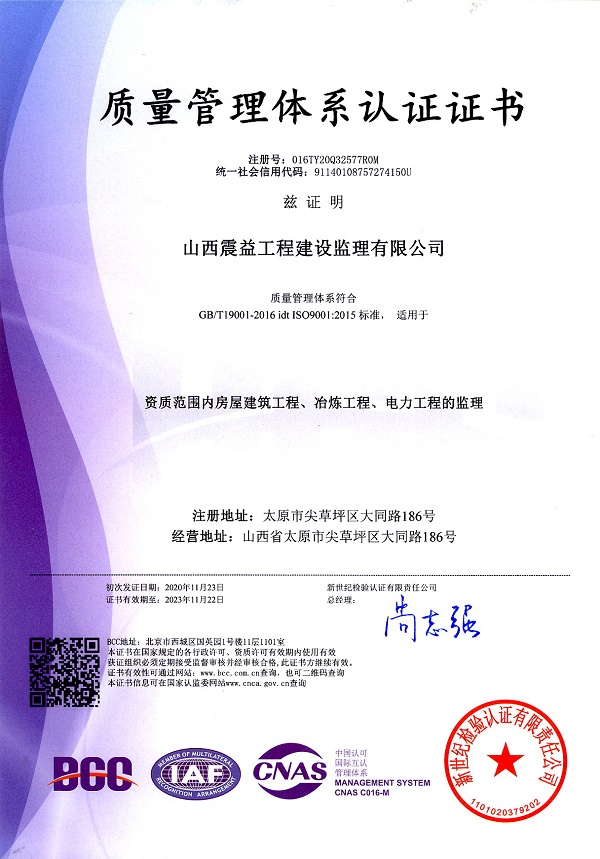 山西震益工程建設(shè)監(jiān)理有限公司【原太原鋼鐵(集團(tuán))工程建設(shè)監(jiān)理有限公司】成立于 1998年4月,注冊資金 600 萬元,是******批準(zhǔn)的具有甲級執(zhí)業(yè)資質(zhì)的綜合性工程咨詢服務(wù)企業(yè),具有冶煉工程、電力工程、礦山工程、房屋建筑工程、市政公用工程等5個工程監(jiān)理甲級資質(zhì)和設(shè)備監(jiān)理甲級資質(zhì)。主要業(yè)務(wù)涉及冶金、房屋建筑、礦山、電力、市政、機(jī)械、環(huán)保等領(lǐng)域的工程建設(shè)監(jiān)理、設(shè)備監(jiān)理、工程咨詢、造價咨詢、檢測試驗(yàn)等。公司建立了質(zhì)量ISO9001:2015標(biāo)準(zhǔn)、環(huán)境ISO14001:2015標(biāo)準(zhǔn)、職業(yè)健康******GB/T28001-2011 idt OHSAS 1800:2007標(biāo)準(zhǔn) “三標(biāo)一體”管理體系,是中國設(shè)備監(jiān)理協(xié)會常務(wù)理事、中國冶金建設(shè)監(jiān)理協(xié)會常務(wù)理事和山西省監(jiān)理協(xié)會副會長單位。
